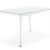 Tavolo in metallo, piano in vetro, allungabile