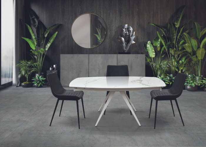 Un tavolo che unisce stile e funzionalità . Il piano rotante permette di accedere facilmente a ogni punto della superficie, rendendo ogni momento a tavola più conviviale e pratico. Design moderno, perfetto per arricchire qualsiasi ambiente con un tocco dinamico e raffinato.