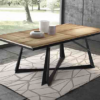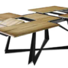 Modernissimo tavolo allungabile di alta qualità dalle linee spigolose ed eleganti, con struttura in metallo e piano in legno.