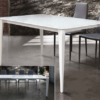 Elegantissimo tavolo in vetro temperato bianco con struttura in metallo con allunghe.