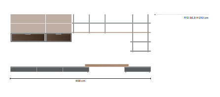 Parete attrezzata moderna e componibile, dal design lineare ed elegante, con Libreria Infinity a terra in controspinta profondità , vano TV centrale e una raffinata libreria sospesa che dona leggerezza e movimento alla composizione. Una soluzione completa che unisce estetica e funzionalità : spazi dedicati all’area multimediale, vani contenitivi e zone per libri e oggetti decorativi. Le finiture nei toni caldi della terra creano un’atmosfera accogliente e sofisticata, trasformando il living in un ambiente contemporaneo e armonioso