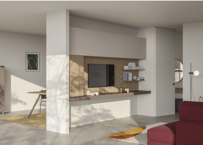 Soggiorno moderno componibile dallo stile lineare, elegante e funzionale. Una soluzione d’arredo che unisce design contemporaneo e massima praticità, pensata per valorizzare ogni ambiente con equilibrio e raffinatezza. Le linee pulite e i volumi ben definiti rendono lo spazio ordinato e armonioso, mentre la componibilità offre libertà di personalizzazione per adattarsi perfettamente alle diverse esigenze abitative. Un soggiorno che coniuga estetica e comfort, ideale per chi desidera un ambiente accogliente senza rinunciare alla modernità